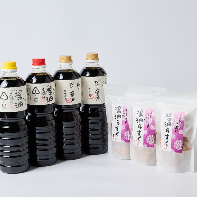 ・綾部醤油 濃口 1L ・綾部醤油 薄口 1L ・綾部醤油 だし濃口 1L ・綾部醤油 だし薄口 1L ・醤油ラスク 3袋 |