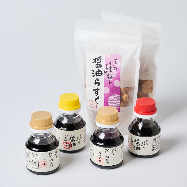 ・綾部醤油 濃口 100ml ・綾部醤油 薄口 100ml ・綾部醤油 だし濃口 100ml ・綾部醤油 だし薄口 100ml ・醤油ラスク 2袋 |