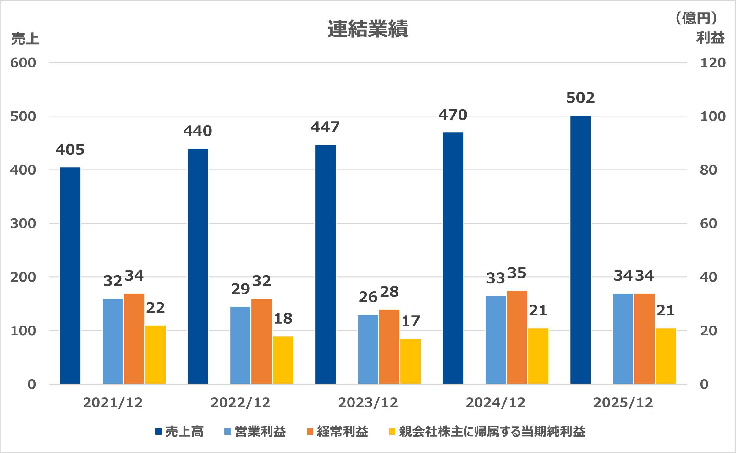 | 売上高 | 405 | 440 | 447 | 470 | 502 |
