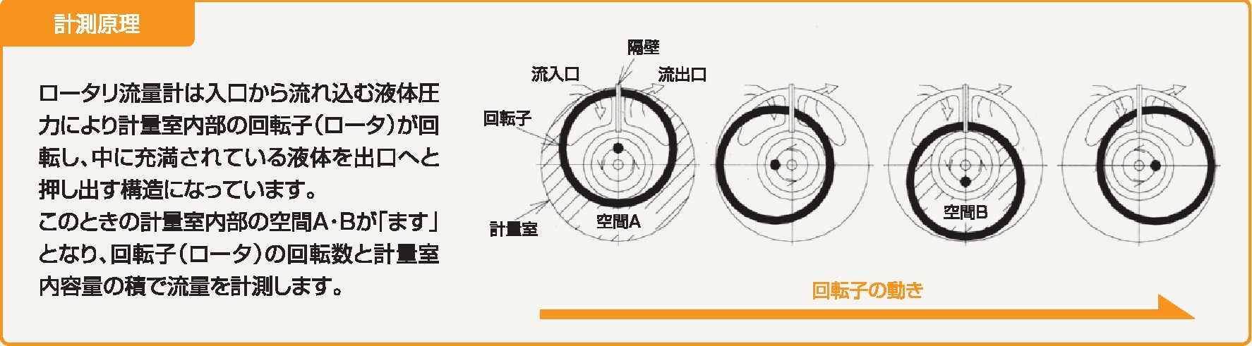 ロータリ流量計の計測原理は、高精度の「ロータリピストン方式※」です。