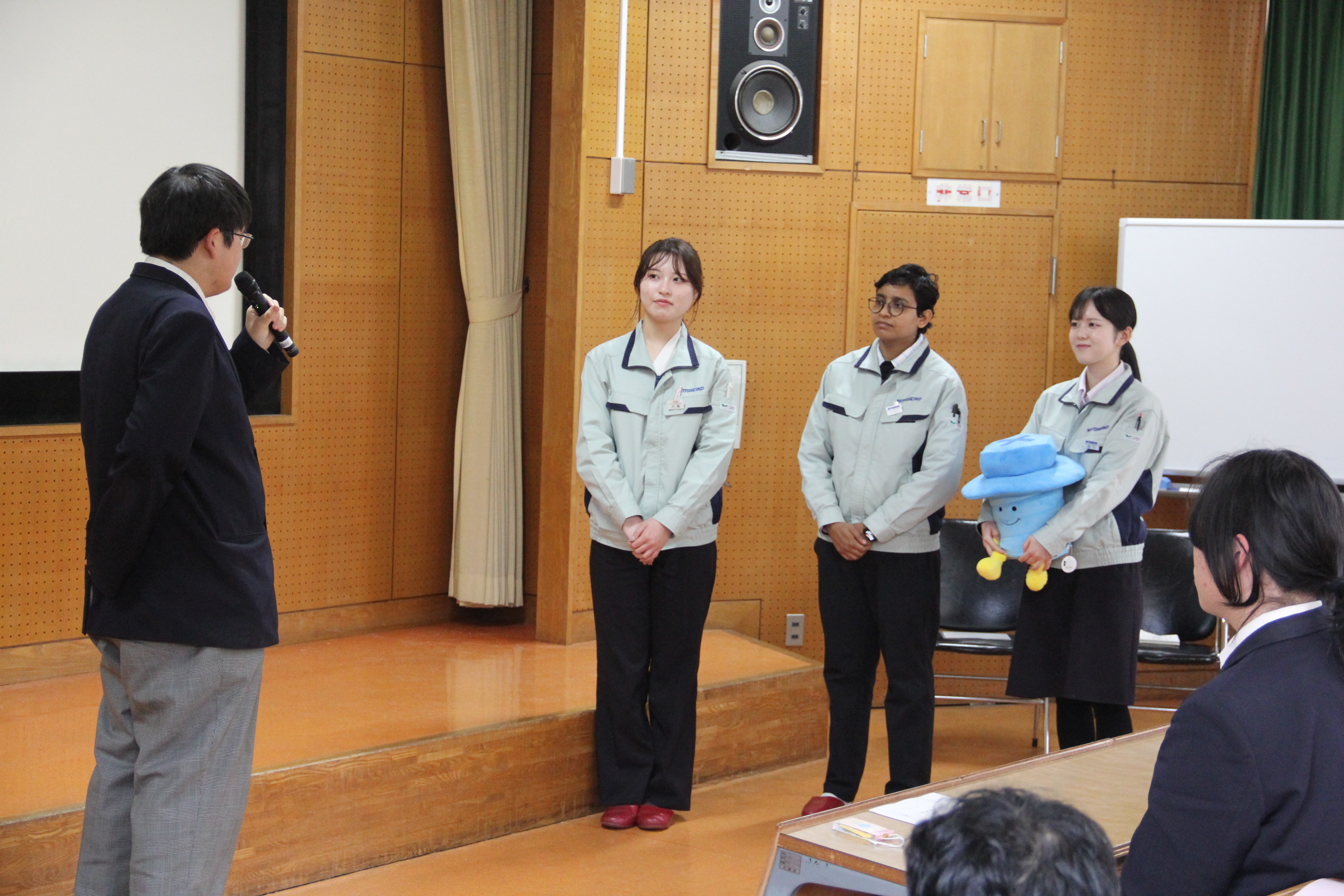 1月14日には当社経営戦略本部の4名が綾部高校に足を運び、3年生254人に贈呈しました。