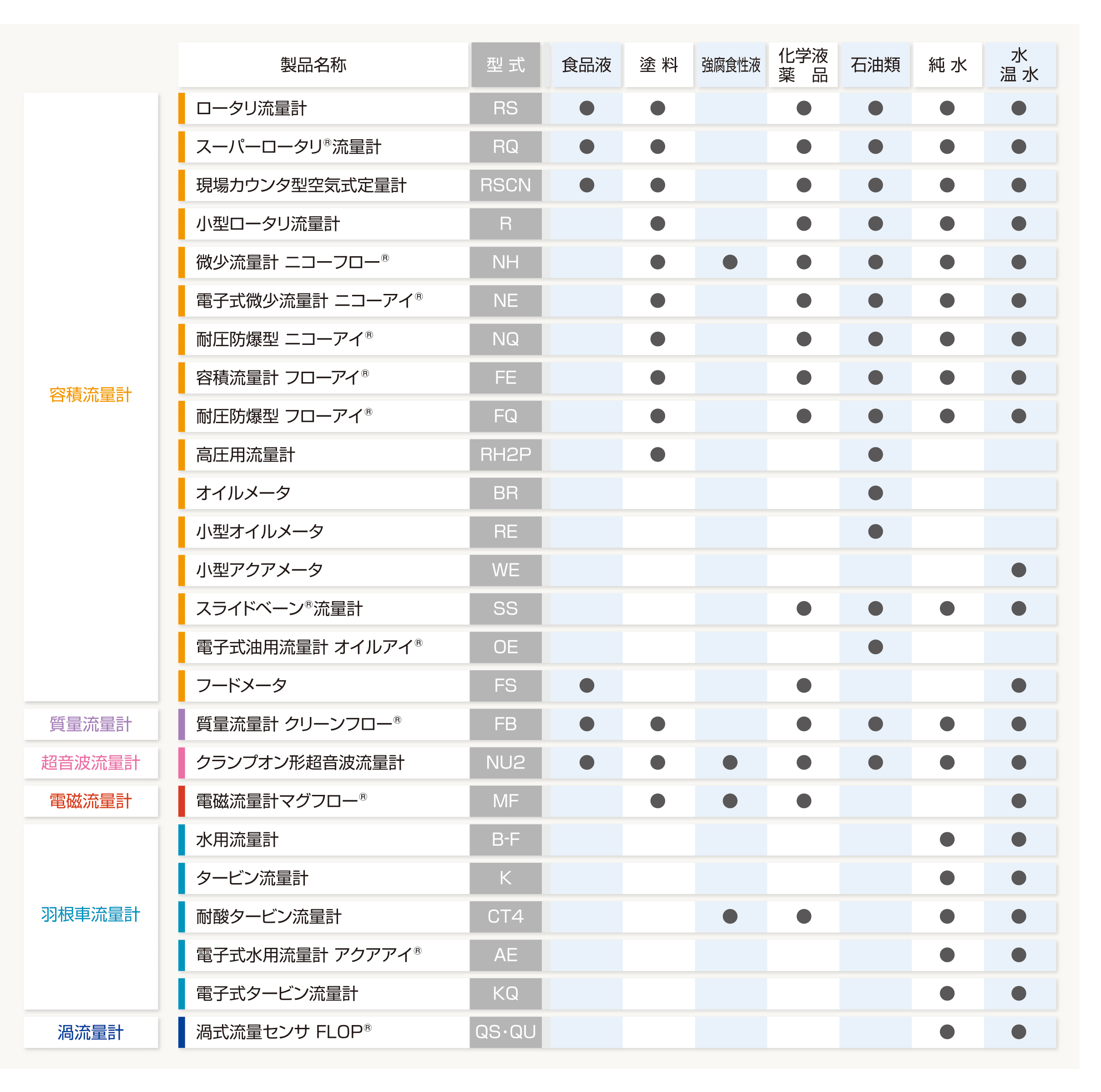 ★日東精工の流量計ラインナップ・計測流体の一覧はこちら↓